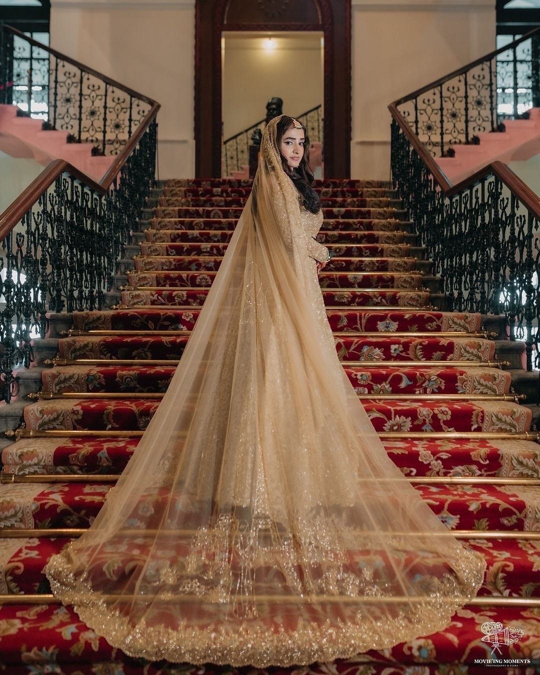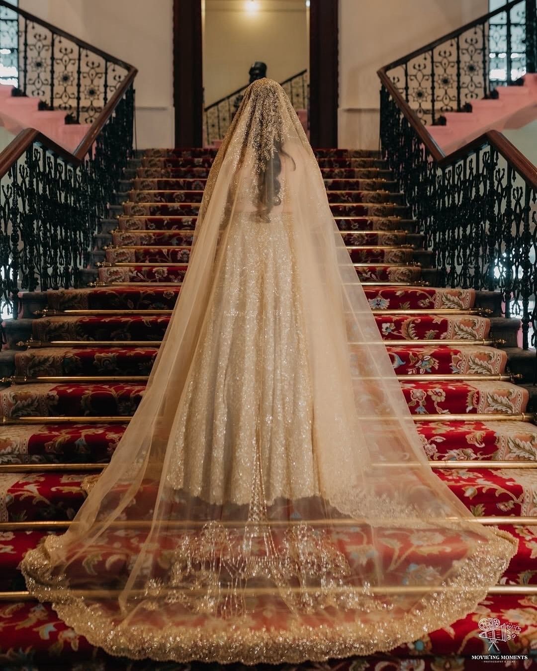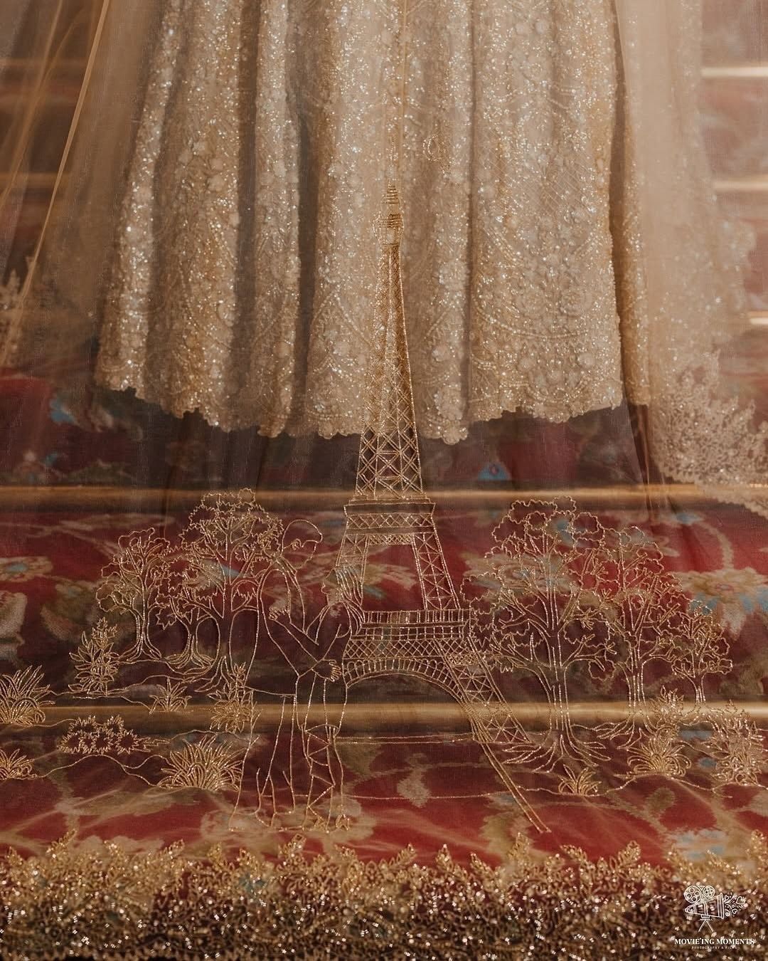 Bride Puja took “personalised” to a whole new level with her veil—beautifully embroidered with her love story. A true fairytale, stitched with love and magic.