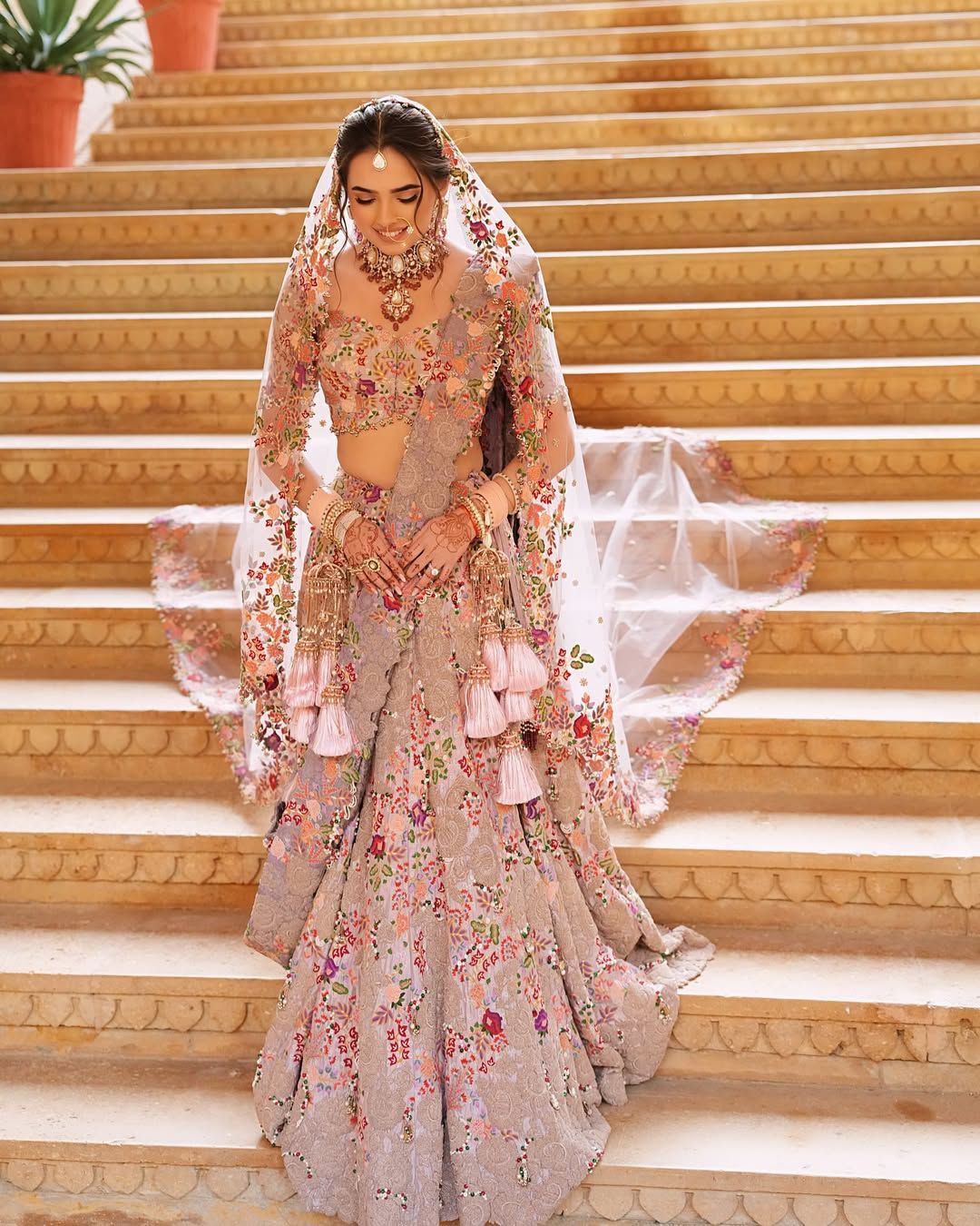 'Pigeon' is the shade this designer bride chose, and we have to say, we haven't seen any other bride rock such a lehenga or this exact shade- she did really stand out as a bride in that!