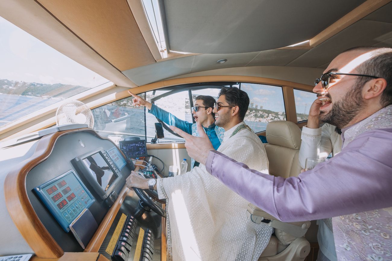 Baraat on a Yacht: A striking blend of tradition and modernity, with the groom arriving via the Bosphorus.