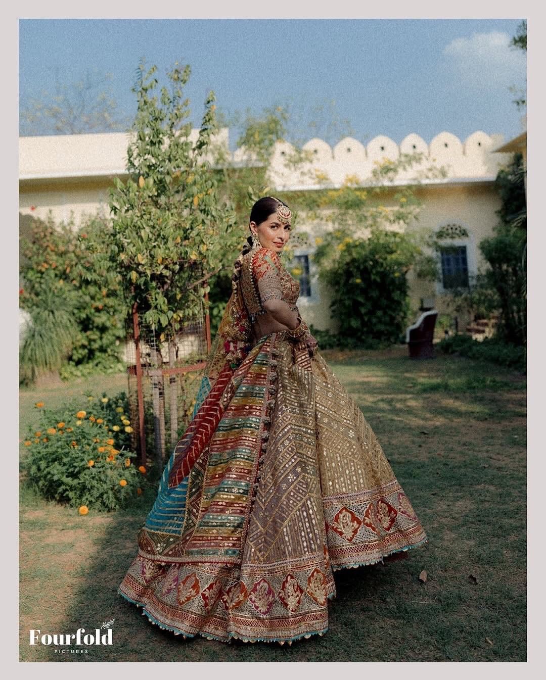 If panelled lehengas are your vibe, this one is a total win-win. With vibrant hues and unique patterns on every panel, this one is a must-see!