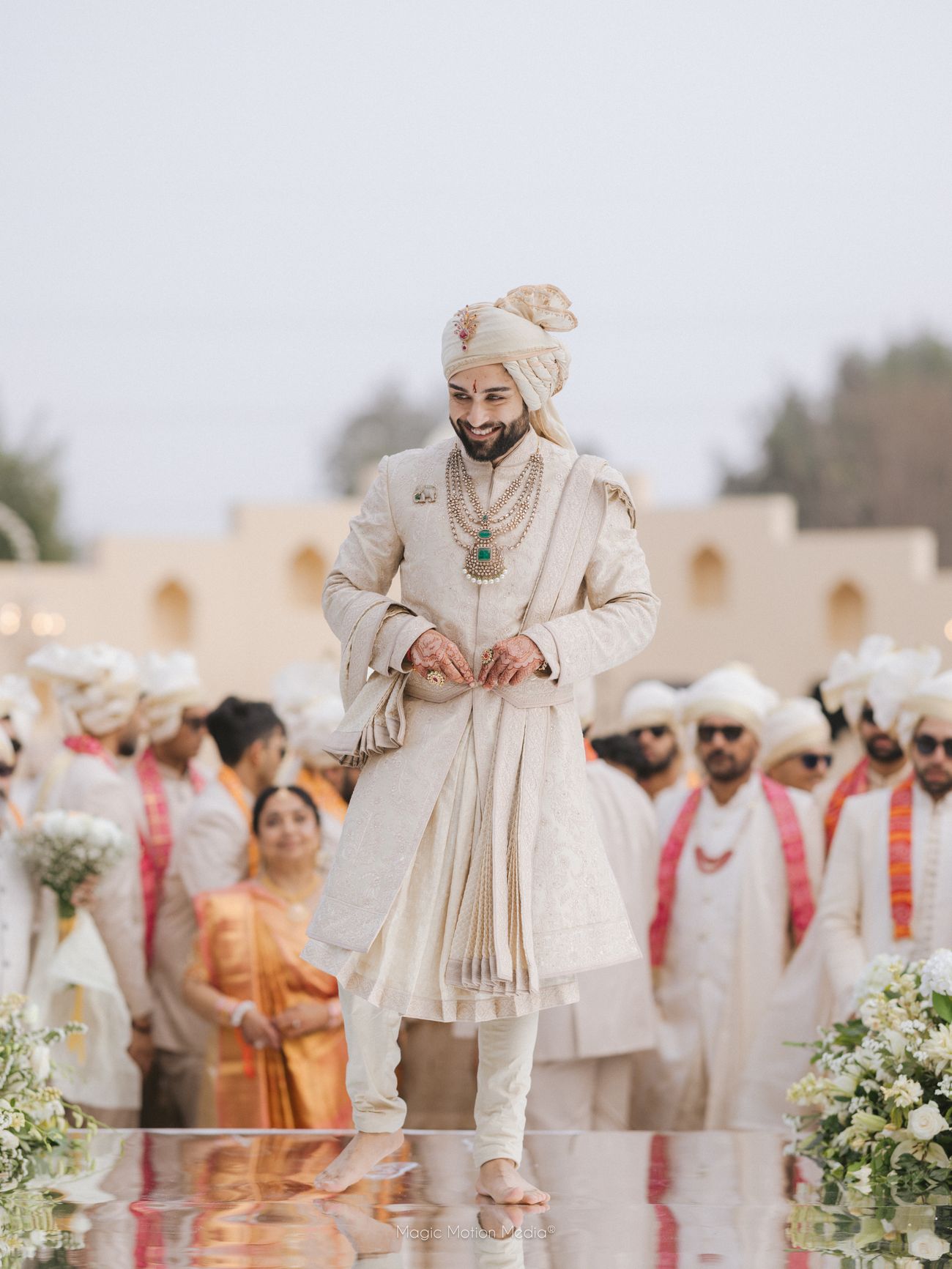 Some weddings feel planned, and there are some that feel curated. Just like Dipika and Jay’s wedding! Brought together in the US, this couple went on to plan a celebration back home that blended Indian soul with global flair, and did it all in serious style. From fashion-forward bride and groom looks that changed with every event, to fireworks timed perfectly with a Sufi band crescendo, this New Year 2026 wedding honestly felt like a celebration that was more than just a wedding. Think of it as a giant, high-energy “shaadi-ka-ghar Airbnb”, where Indian hospitality met American-style parties, and every moment felt intentional, elevated, and impossibly fun. Trust us, this is one wedding you’ll want to bookmark for the looks alone.