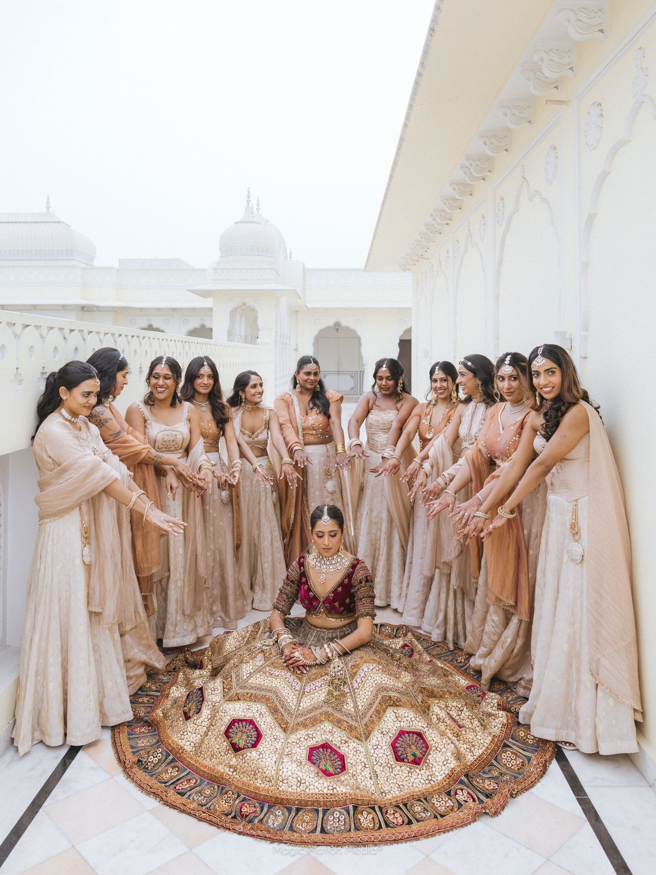 The wedding took place on January 1, 2026. For Jay and me, our hearts and families are deeply rooted in Indian culture. Although we grew up in the States, we’ve spent almost every summer in India visiting family, which has given us a strong connection to both worlds. For our wedding, we wanted our friends and family in America to experience the best of India, and vice versa. Our vision was for the celebration to feel like a giant shaadi-ka-ghar Airbnb—highlighting Indian hospitality, entertainment, and food—while also bringing in elements of our American life through fun dances, heartfelt speeches, after-parties, and creative décor. Since so many loved ones travelled across the world for us, we also wanted to surprise them with unforgettable moments—whether it was fireworks erupting at the peak of a Sufi performance after the ceremony, or hosting our welcome party at Paro, a local Jaipur bar.