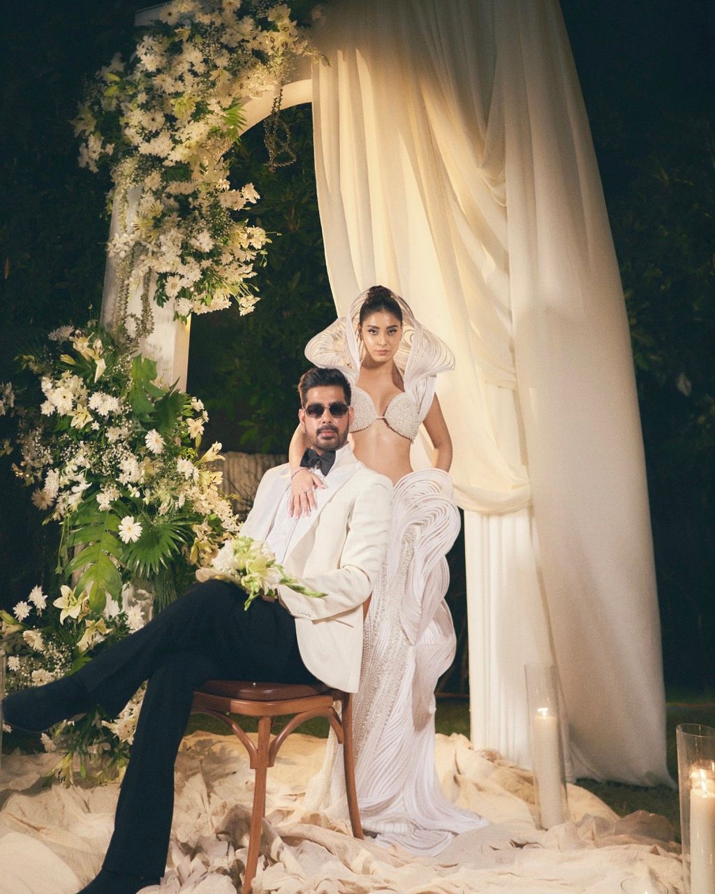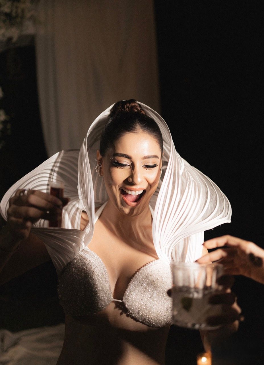 Our wedding took place on October 30. It was modern, contemporary, and very fashion-focused. We had an English-style cocktail night where guests wore tuxedos and dresses, accompanied by Moroccan drummers. The music was a mix of house, techno, and bolly-tech, and we focused heavily on great sound and effects — which is what made the night such a hit. As a content creator, I was also a Jägermeister bride, and they sponsored our cocktail night, which turned out to be another major highlight. The overall décor had an English aesthetic as well, and I’m yet to post those details on my page.
