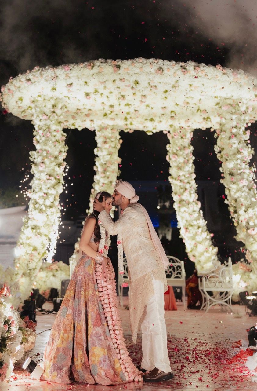 Vendors: Venue: Sheraton Grand Palace, Indore | Makeup Artist: Shradha Luthra★ 4.8 | Photography: For You Weds | Bridal Outfits: Vvani By Vani Vats★ 4.5 (Mehendi), Gaurav Gupta★ 4.7 (Cocktail), Mishru★ 4.9 (Wedding), Abhishek Sharma Studio★ 5 (Sufi Reception), Celestine by Ritika (After Party) | Groomwear: Rabani and Rakha★ 5 (Mehendi), Shantanu Nikhil★ 4.7 (Wedding and Reception)