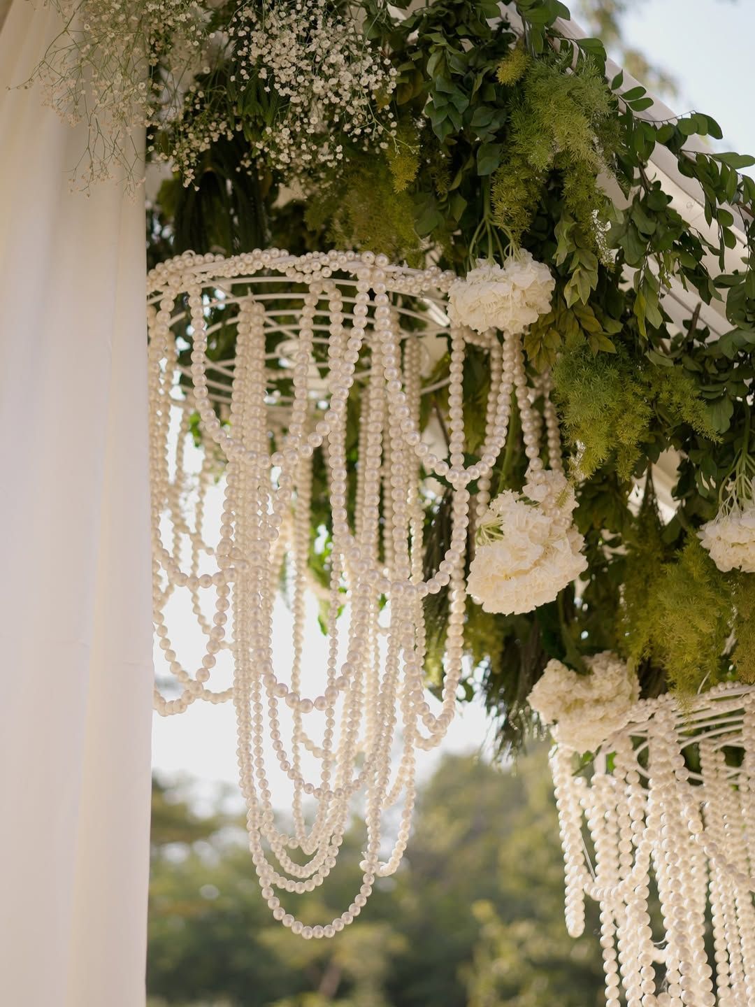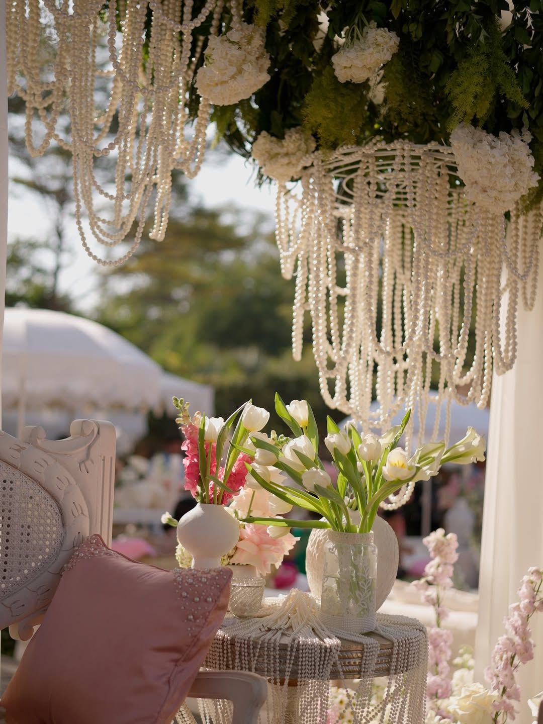 Crystal chandeliers are taking a backseat, because pearls are having their bridal era. Soft, romantic and insanely elegant, pearl chandeliers add that old-money, heirloom-style charm without screaming for attention!