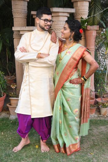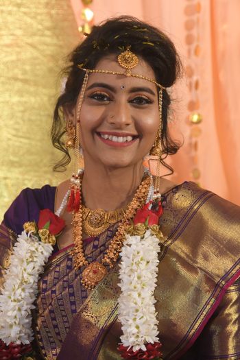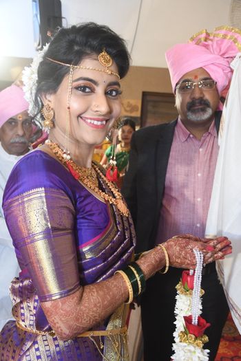 Wedding and Pooja makeup for NRI bride Poornima with perfect blend of South Indian and Maharashtrian rituals.