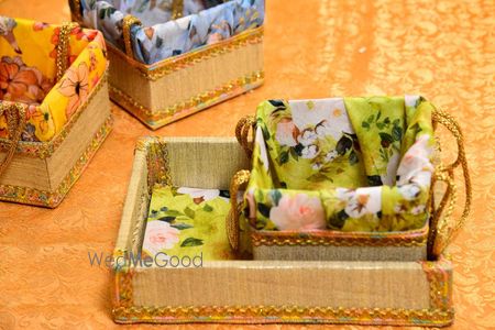 a collection of handmade hampers for wedding gifting, haldi favour, mehandi favour, or any kind of gathering function