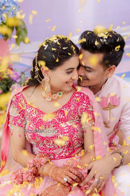 A wedding with bride and her family attires handpainted by the mother, unique ideas for Haldi and breathtaking candid couple portraits