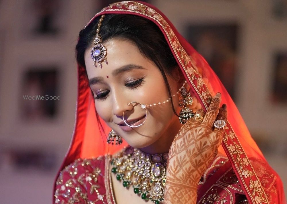 I got my bridal makeup done by “Meenu Jain”. “I am truly delighted with my bridal makeup. The artist delivered an exceptionally flawless and sophisticated look that enhanced my natural features beautifully. The makeup lasted perfectly throughout the wedding, and I received endless compliments. Highly recommended for any bride seeking perfection.”