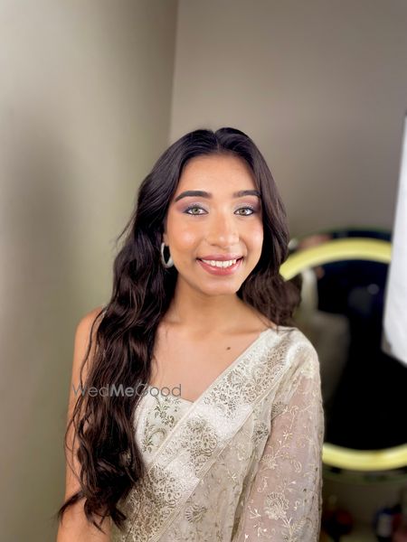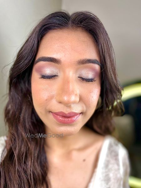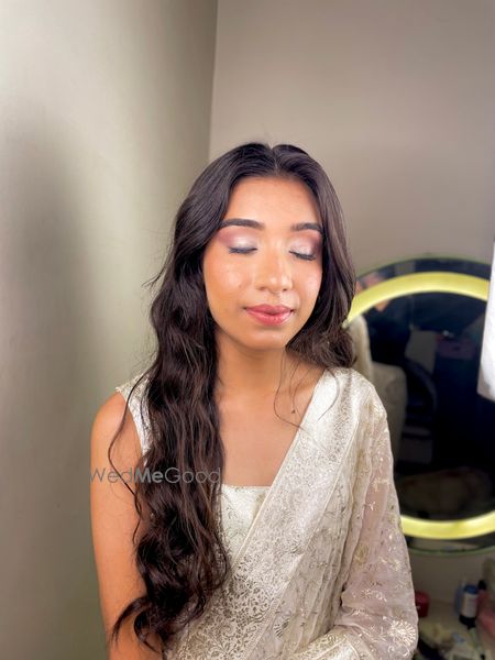 Dhara wanted something minimal yet glam, neutral eyeshadow with light glitter, skin like base.