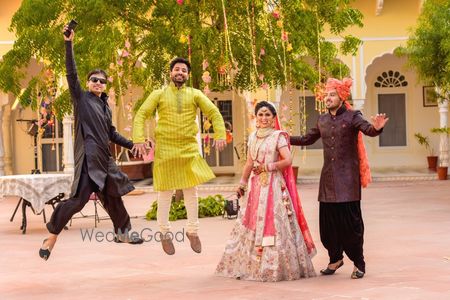 A palace wedding for you. This huge palace : Naharagarh Palace, situated amidst the famous Ranthambore Tiger Reserve, in Sawai Madhopur, Rajasthan, was one Royal wedding, one could dream of. The location this unique with flavors of Royal Rajasthani architecture left us flabbergasted as we started planning the details for the wedding. Mandap by the pool and the Varmala on the pool, were some of the elements that added the subtle but stroke touches to the overall experience. Sneha and Atul were th