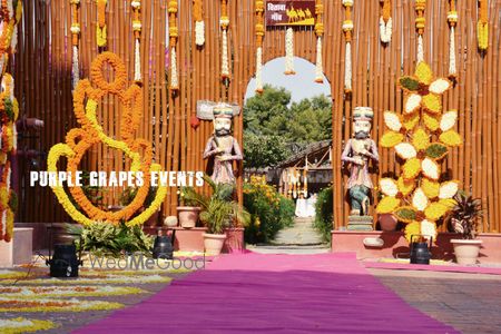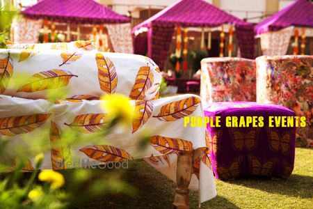 Butterfly print drapes to create a beautiful backdrop with traditional flower motifs and decorated trucks... Lounge seating with lots of plush pillows & masand was perfect for a mehndi carnival.