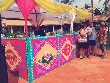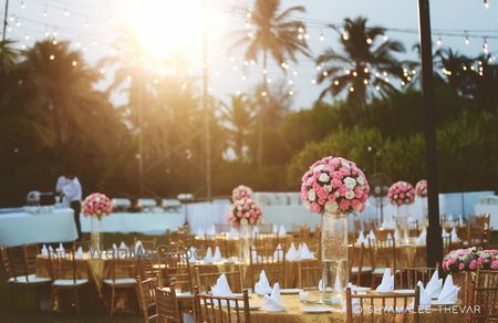 For the mehendi we worked with vibrant prints – be it the Bar, the DJ Console or the Entrance. For the Evening Dinner we went all out with pure whites and a hint of gold shimmers. And for the South Indian Rituals to be held early next day – we played with yellow marigolds, lots of greens and a touch of whites – Tuberoses (Rajnigandhas) and Mogras; which just added another sensory dimension to the event. This experiential wedding made us fall in love all over again with the simplicity that has