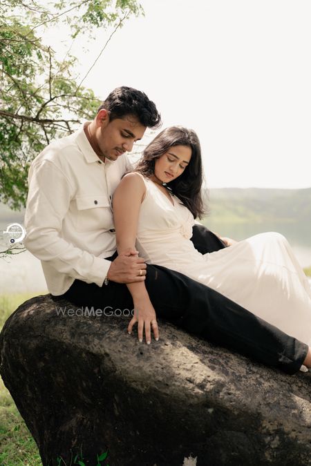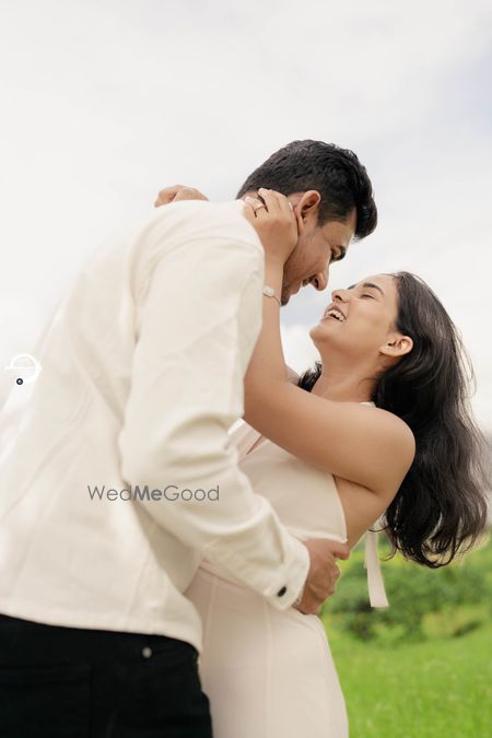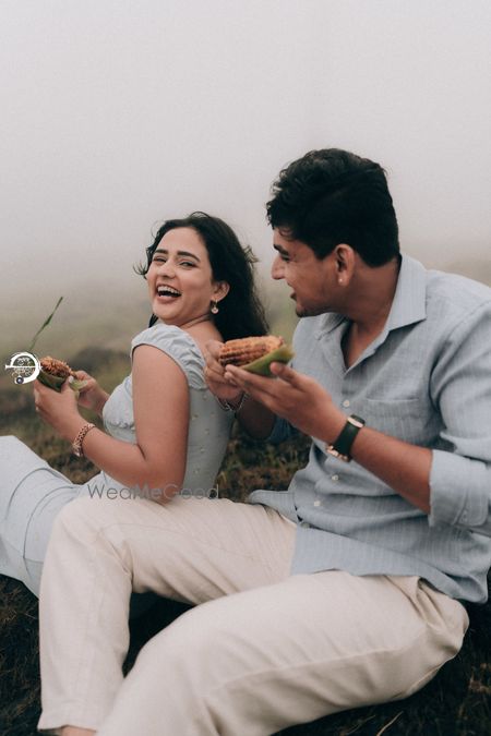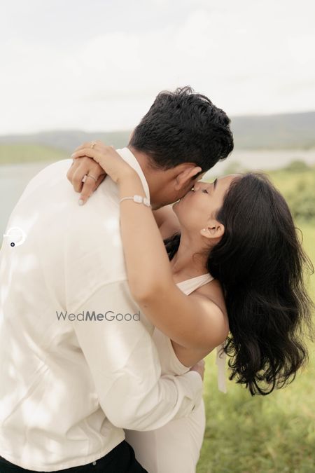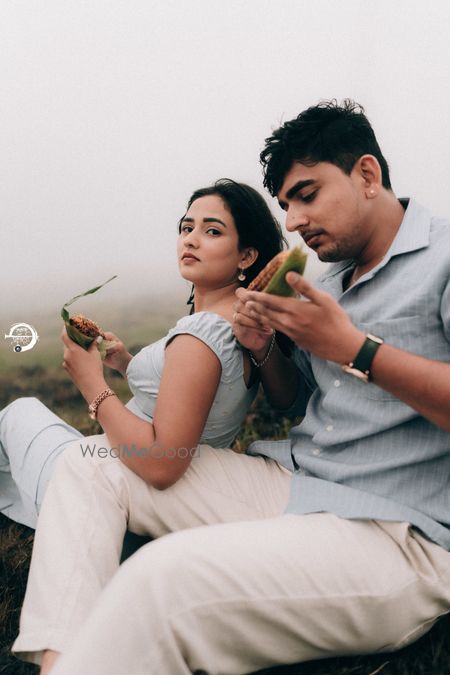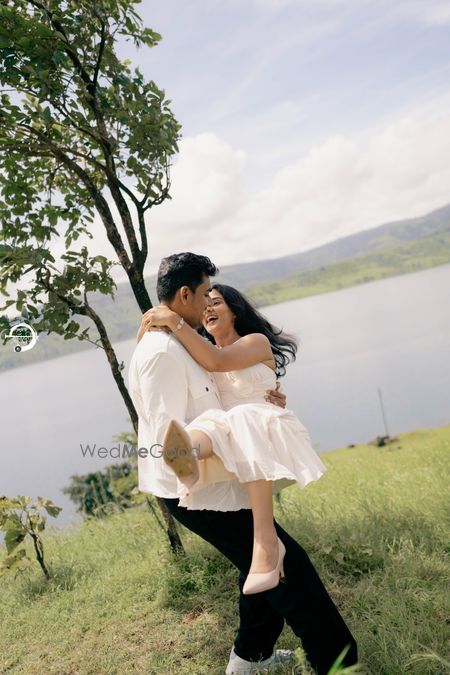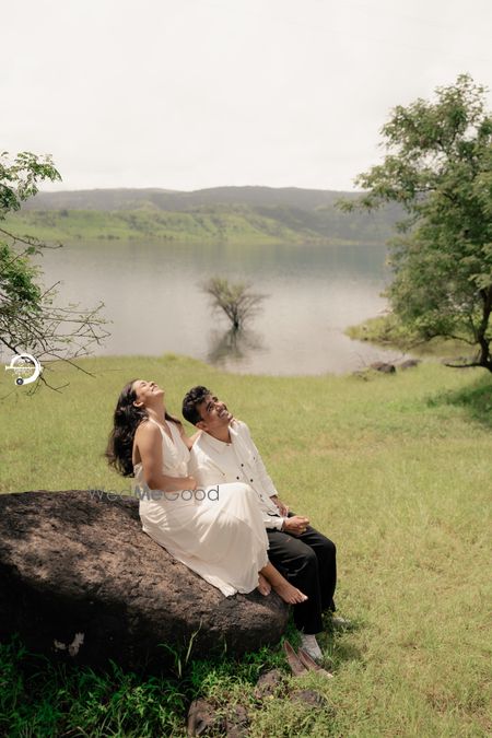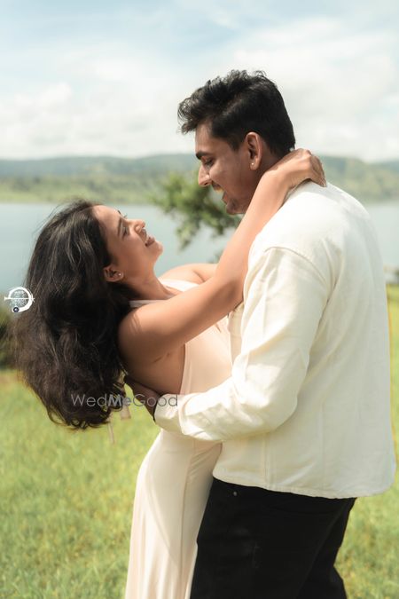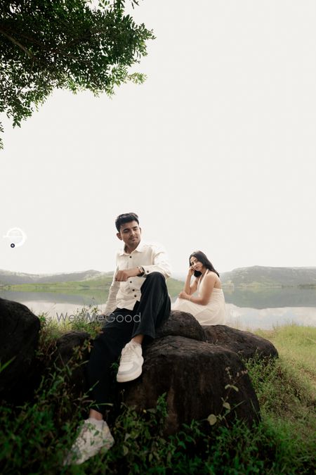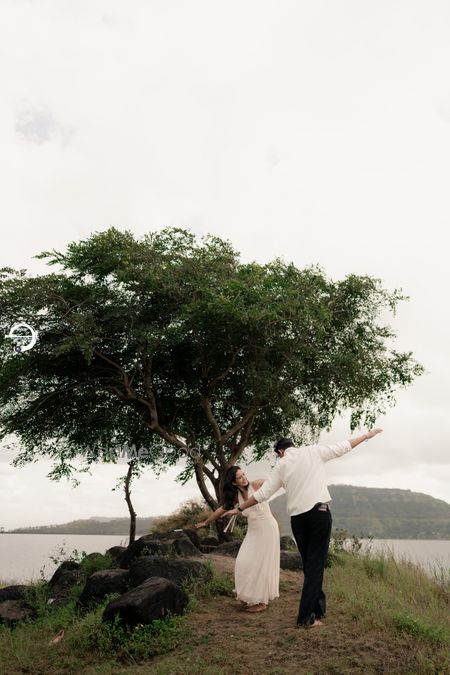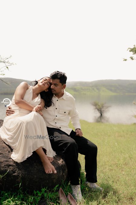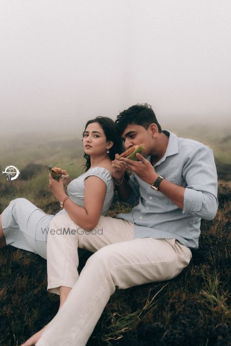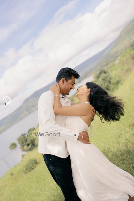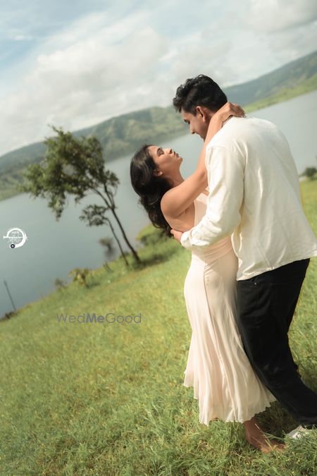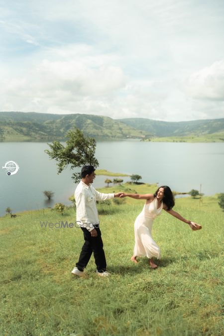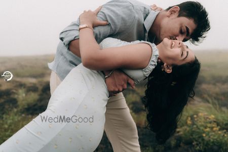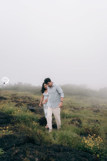 A Pune Love Story ? Nestled in the serene outskirts of Pune, this photoshoot captures a moment suspended in time—where nature’s quiet embrace meets the warmth of companionship. As soft fog rolls over the lush, grassy terrain, two souls walk side by side, wrapped in the tranquility of the moment. The mist blurs the distant trees, creating a dreamlike canvas that feels both intimate and infinite. Dressed in light hues that echo the softness of the landscape, the couple moves effortlessly through t
