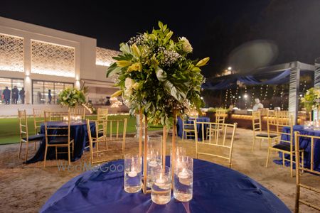 A midnight blue-themed cocktail put together at the bride's request!