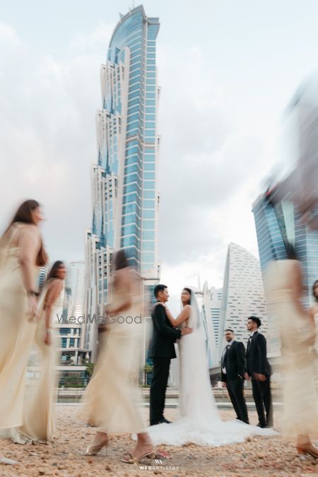 In Dubai's dunes and glittering skies, their love ignited—vows under palms, hearts entwined in golden forever.