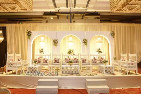 Flowers: Centerpieces, arches, floral walls, and bouquets. Lighting: Chandeliers, string lights, uplighting, LED displays, and candles. Furniture: Chairs, tables, sofas, and unique props like vintage pieces or contemporary designs. Backdrops: Custom walls, drapes, or banners for photo opportunities. Ceiling Decor: Hanging installations, drapery, lanterns, or balloons. Linens: Tablecloths, runners, and chair covers to complement the event's color scheme. Signage: Personalized signs, seating chart