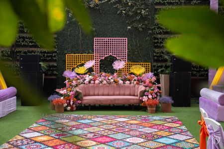 Colorful Boho style mehendi decor curated for Hitesh & Reena
