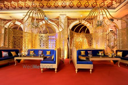 The venue was the Mardan Palace, a beautiful heritage property. The décor set in rich hues of red, gold and white was themed on "The Palace of Versailles". Each and every element of the décor was an example of stunning regality and profound beauty. The ceremony was hosted by Neha Dhupia & Manish Paul. Godh Bharai commenced with a performance by Ace Flutist - Paras Nath, followed by amazing performances by the family and the lovely couple, choreographed by Shiamak Davar.