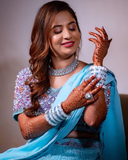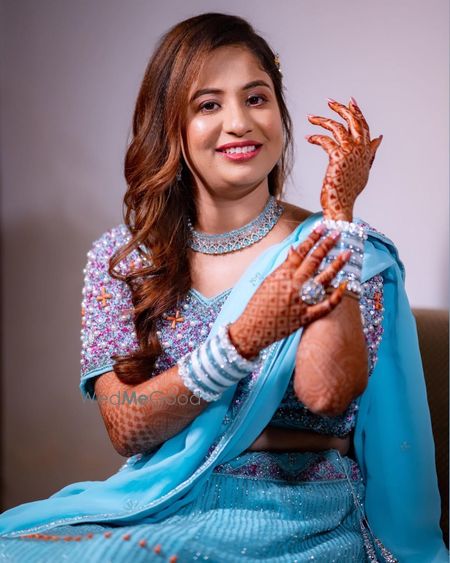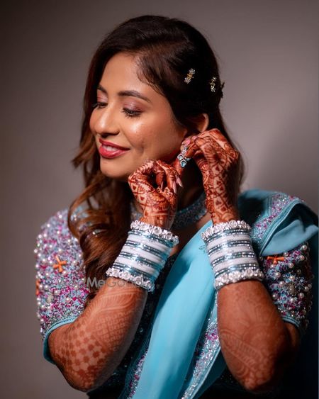 Makeup look is all about achieving a romantic and glowing appearance for the bride-to-be during her engagement ceremony. It focuses on enhancing natural beauty while adding a touch of elegance and charm.
