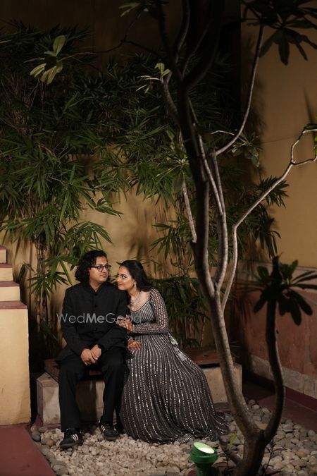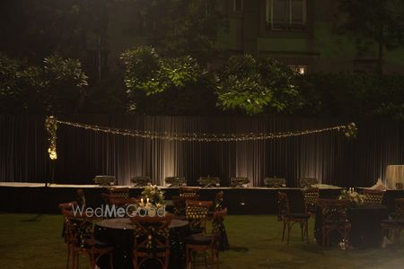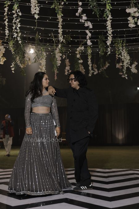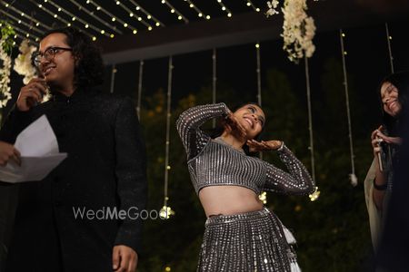 Stuti and Achu’s Sangeet at The Woods was a glamorous, black-and-silver celebration of love and joy. Twinkling lights, elegant florals, and a sparkling poolside set the stage for DJ Anhad’s high-energy beats, heartfelt family performances, and the couple’s lively duet. Fun games, laughter, and vibrant dances made the night an unforgettable blend of elegance, celebration, and togetherness.