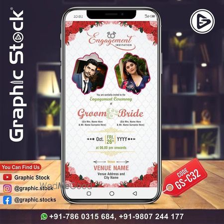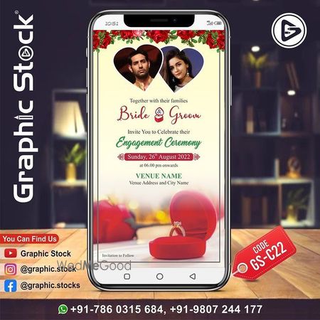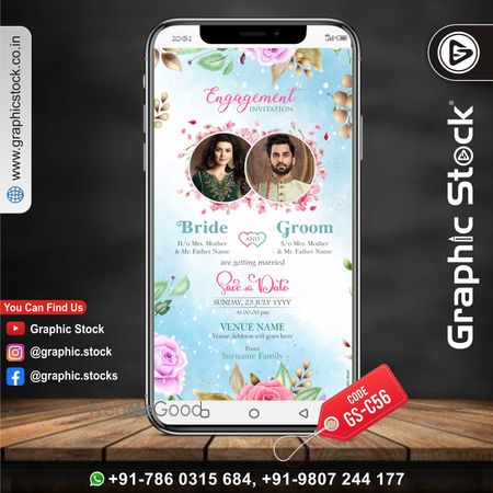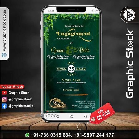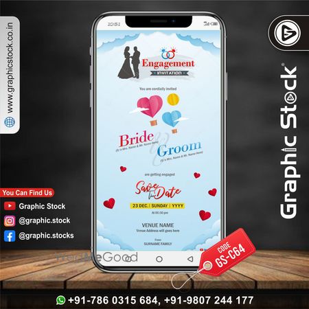 Graphic Stock presents engagement invitation card template for engagement party card design, we will make your engagement invitation card, this is a unique and traditional card design for indian luxury engagement party invite for sending through whatsapp. Contact us for your eCard Invitation.