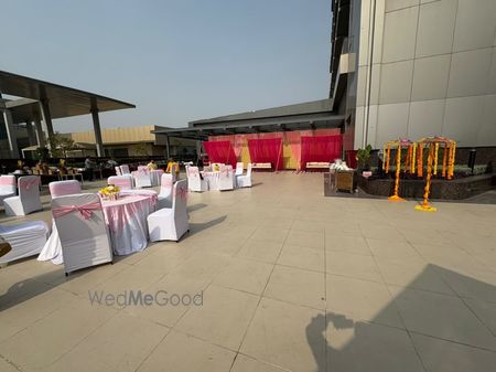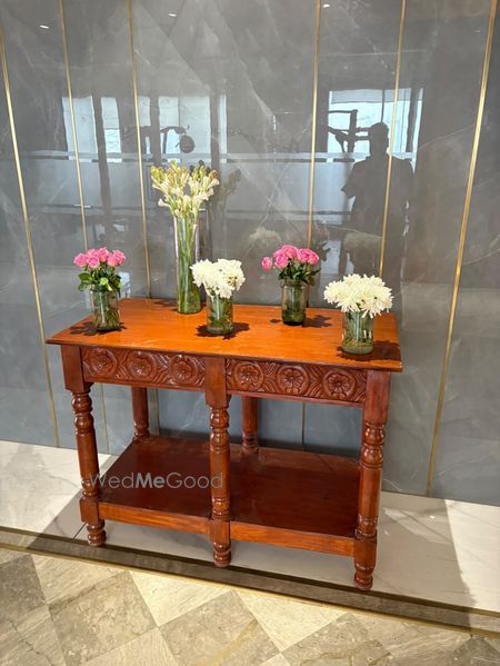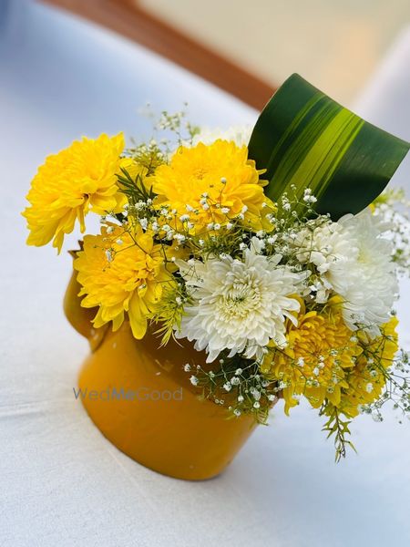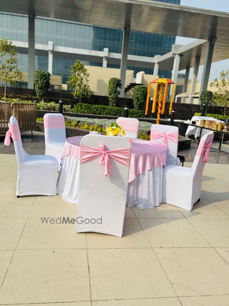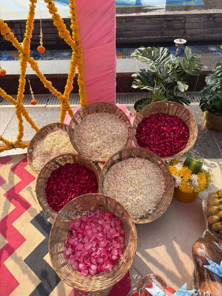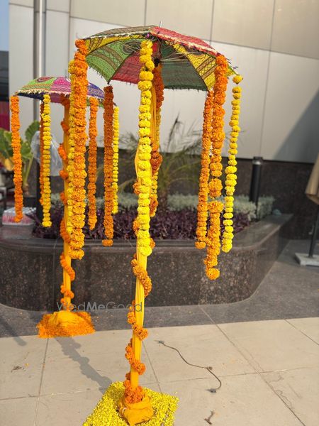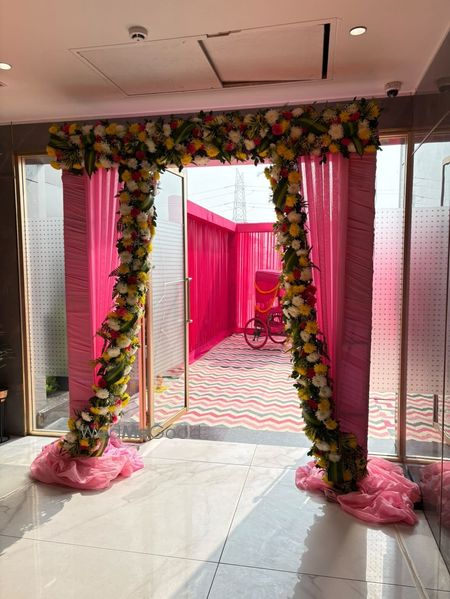 A thoughtfully styled Haldi décor at Sunday Hotel & Residences, Gurugram, featuring vibrant hues, lush florals, and graceful details that created a warm, joyful atmosphere for the celebration.