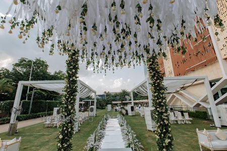 An elegant white wedding with modern cloud cocktail At Intercontinental Jaipur!