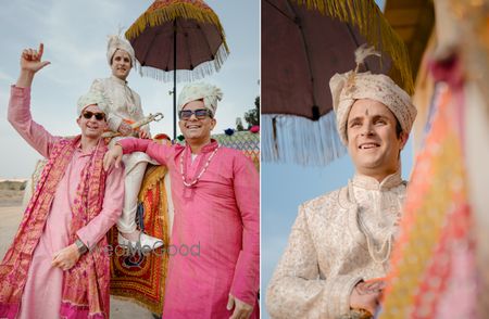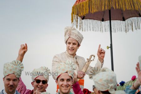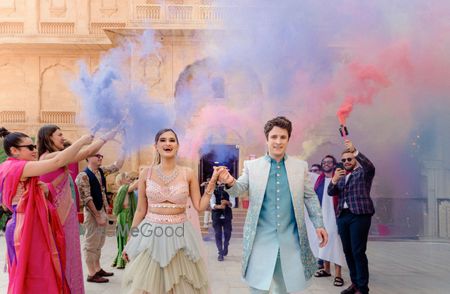 Amidst the breathtaking backdrop of a magnificent palace in Jaisalmer, Riccardo and Surbhi's union became a testament to love transcending borders. Hailing from Italy, Riccardo, and Pune, the bride, Surbhi, their journey began during the challenging times of the pandemic. Their love blossomed, bridging cultures and continents. The grandeur of the palace served as the perfect setting for their perfect destination wedding, where family, friends, and the timeless architecture witnessed the union of