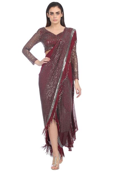 Crystal And Sequins Embellished Saree Gown