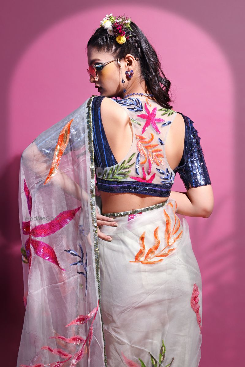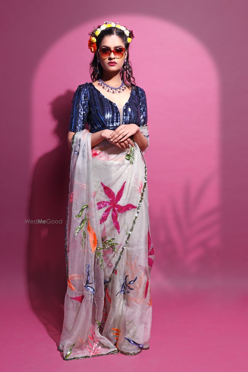 Ivory Organza Silk Saree With Ditsy White Print Blouse