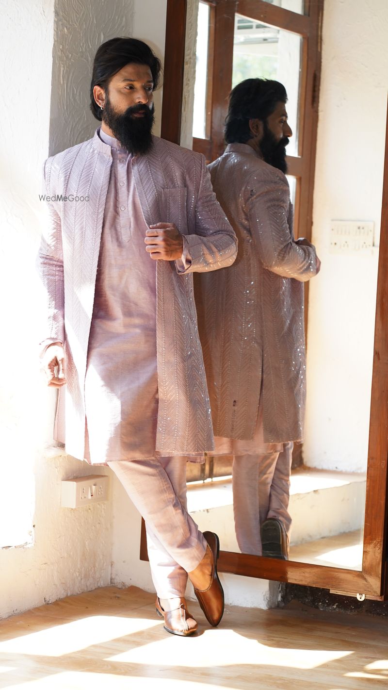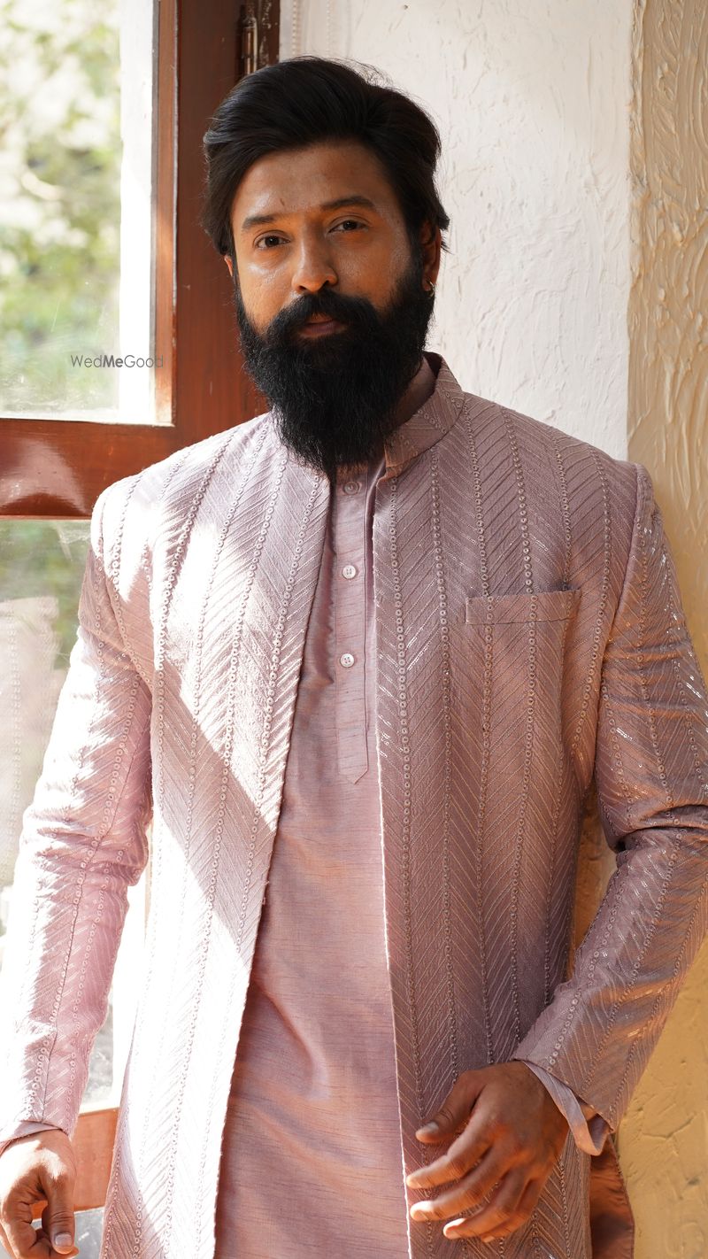 Mauve jacket style sherwani set