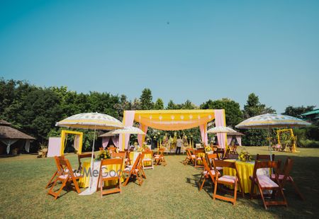 Immerse in the vibrancy of love! Enjoy your haldi ceremony at Aahana Resort with refreshing water showers, bursts of bright hues, or the beauty of a floral celebration.